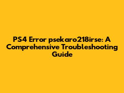 Fix PS4 Error: Psekaro218irse - Easy Troubleshooting Guide
