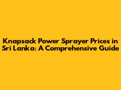 Knapsack Power Sprayer Prices In Sri Lanka: A Comprehensive Guide
