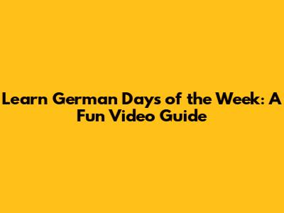 Learn German Days Of The Week: A Fun Video Guide
