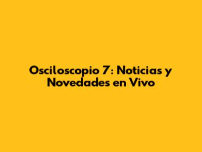 Osciloscopio 7: Noticias Y Novedades En Vivo