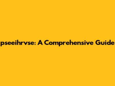 Pseeihrvse: A Comprehensive Guide