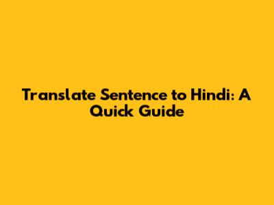 Translate Sentence To Hindi: A Quick Guide